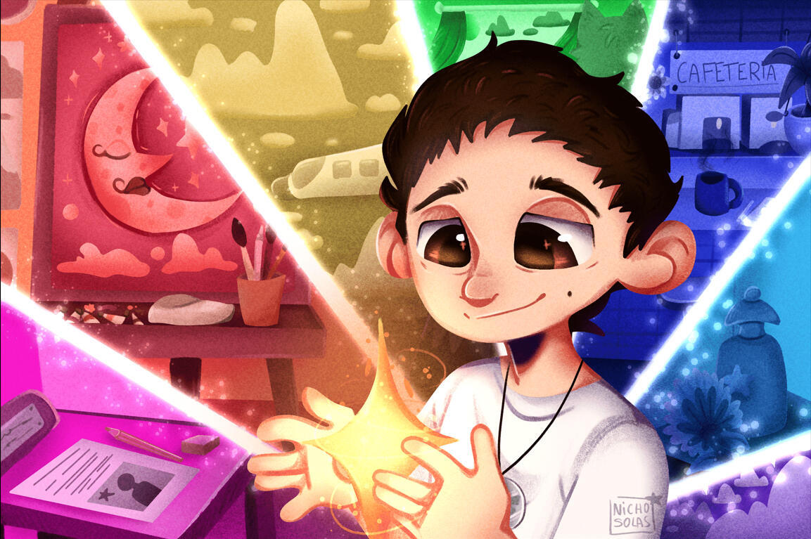Vem com um PNGTuber com 4 imagens: boca fechada-olho aberto, boca fechada-olho fechado, boca aberta-olho aberto, boca aberta-olho fechado.